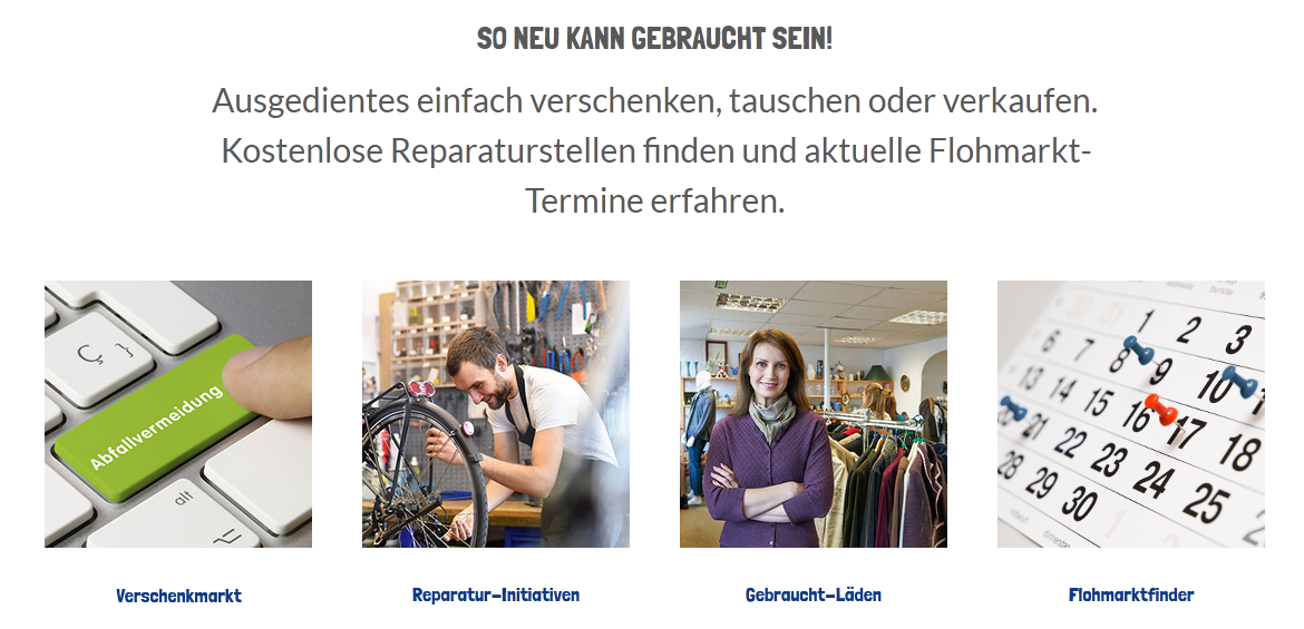 Ausgedientes einfach verschenken, tauschen oder verkaufen. Kostenlose Reparaturstellen finden und aktuelle Flohmarkt-Termine erfahren.